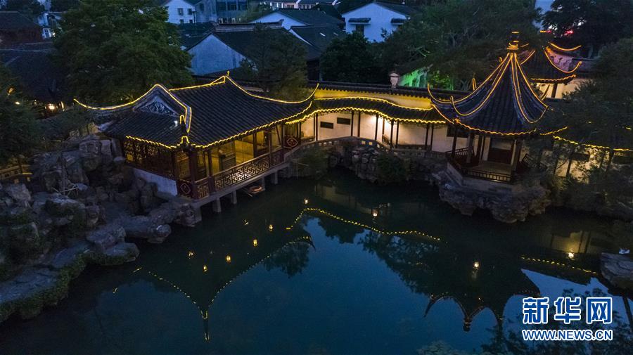 這是5月22日晚拍攝的蘇州網師園(無人機拍攝)。網師園是唯一在夜間面向公眾開放的蘇州園林。 新華社記者 沈伯韓 攝