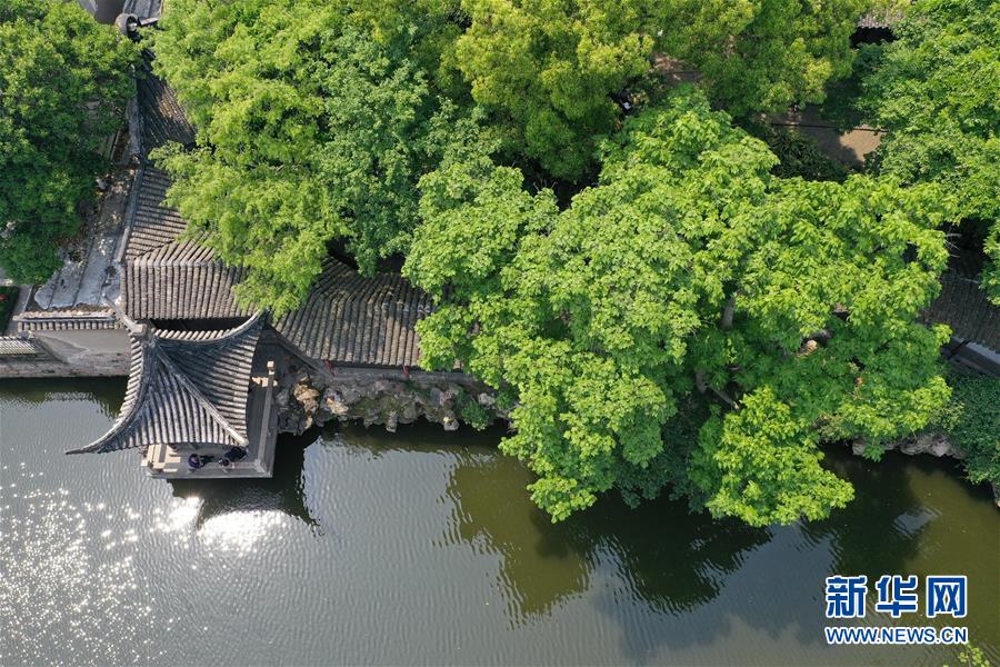 這是無(wú)人機(jī)拍攝的蘇州滄浪亭景色(5月10日攝)。 新華社記者 季春鵬 攝
