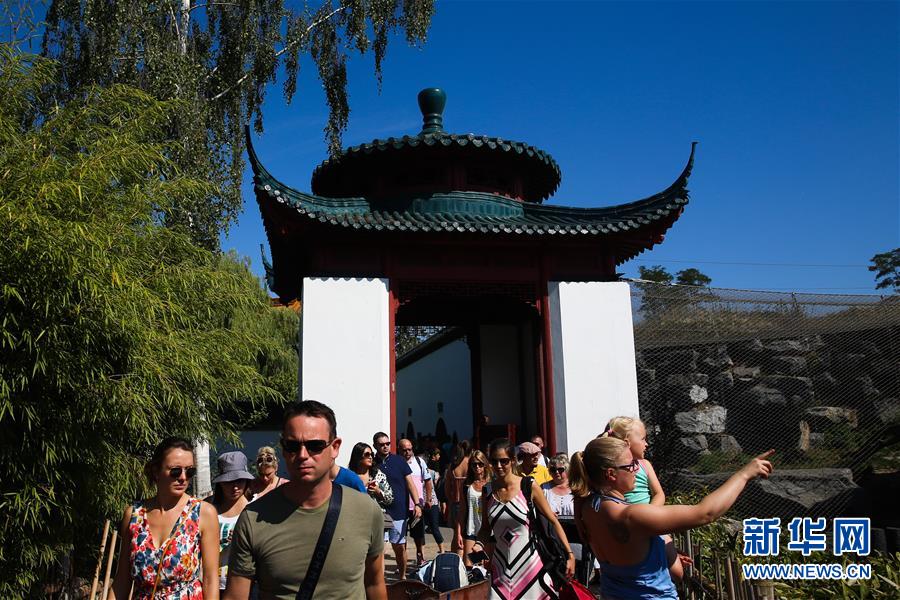 8月24日,在比利時布呂熱萊特市,游客參觀天堂動物園的“中國園”。新華社記者鄭煥松攝