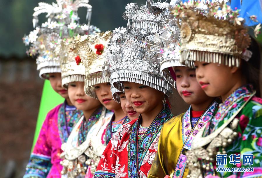 10月28日,在廣西融水苗族自治縣拱洞鄉(xiāng)龍令村,苗家小姑娘觀(guān)看民俗表演。新華社記者 黃孝邦 攝
