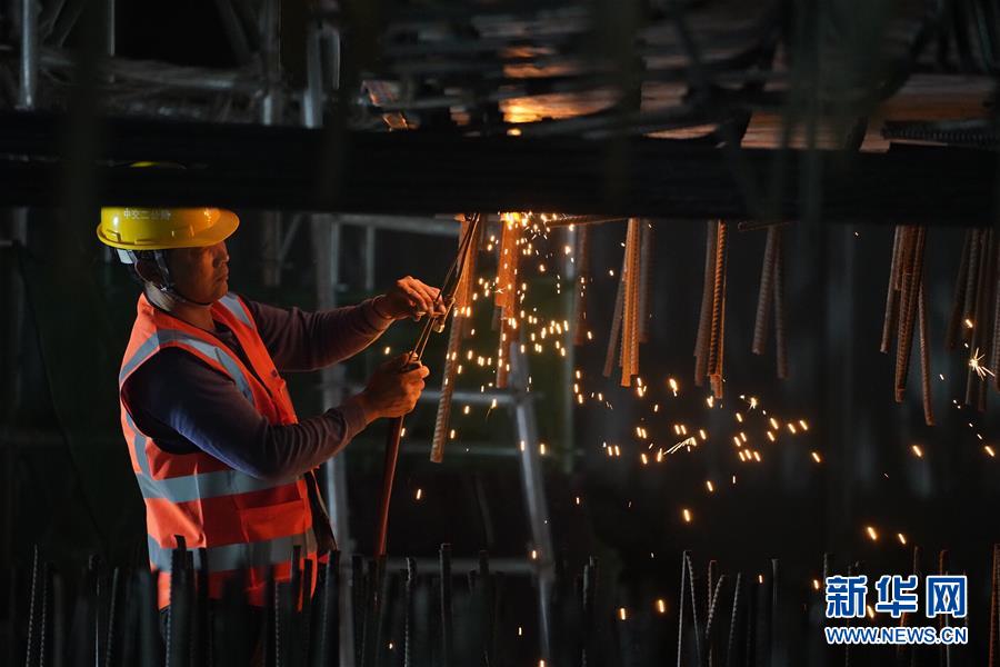 8月27日凌晨,施工人員在進行橋梁轉(zhuǎn)體施工。新華社記者楊世堯攝