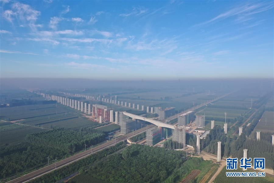 這是8月27日晨無人機拍攝的轉(zhuǎn)體完成的橋梁。新華社記者邢廣利攝