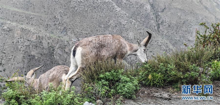 兩只巖羊在西藏山南市洛扎縣色鄉(xiāng)海拔4000米左右的盤山路邊,悠閑地吃著野果青草(9月22日攝)。 在西藏山南市洛扎縣色鄉(xiāng)海拔4000米左右的盤山路上,一群巖羊悠閑地吃著野果青草,完全不介意來往的車輛、行人和近在咫尺的鏡頭。 巖羊是國家二級保護動物。近年來,隨著西藏生態(tài)保護力度加大,巖羊數(shù)量不斷增加。 新華社記者 晉美多吉 攝