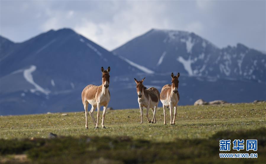 西藏札達縣香孜鄉(xiāng)熱布加林牧場上的藏野驢(7月29日攝)。新華社記者晉美多吉攝