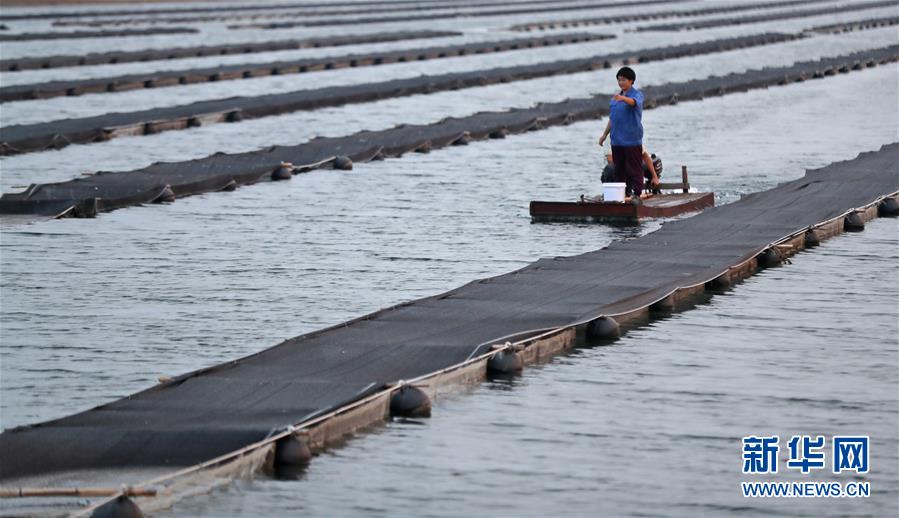 郭旗和愛(ài)人坐船查看海參養(yǎng)殖情況(9月5日攝)。 新華社記者 楊青 攝