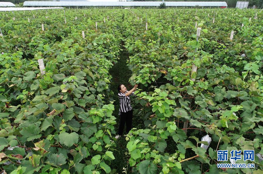 王衛(wèi)花在葡萄園內(nèi)忙碌(8月21日攝)。 新華社記者 邵瑞 攝