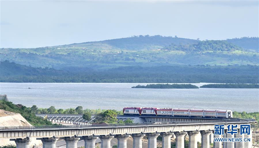 2017年5月29日,一列肯尼亞蒙內(nèi)鐵路測(cè)試列車(chē)行駛在蒙巴薩特大橋上。由中國(guó)承建的蒙巴薩-內(nèi)羅畢標(biāo)軌鐵路(蒙內(nèi)鐵路)全長(zhǎng)約480公里,于2017年5月通車(chē)。新華社記者孫瑞博攝