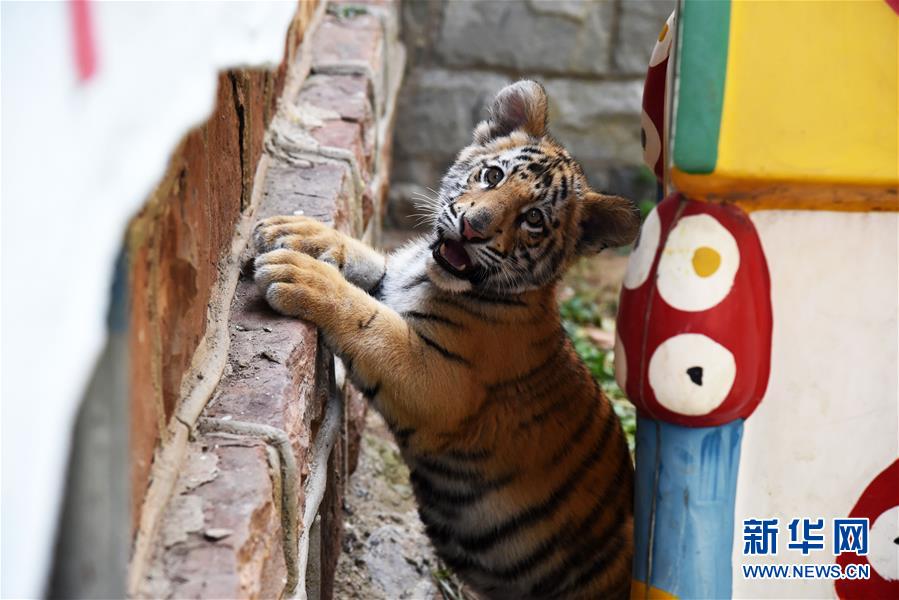 9月26日,孟加拉虎寶寶“小七”在自己的小窩里“玩?!?。 山東濟(jì)南動物園的孟加拉虎寶寶“小七”只有3個月大,由于虎媽媽奶水不足,“小七”一出生便由動物園工作人員按科學(xué)方法人工飼養(yǎng)。目前,在飼養(yǎng)員的精心照料下,“小七”在自己的小窩里茁壯成長。 新華社記者 王凱 攝