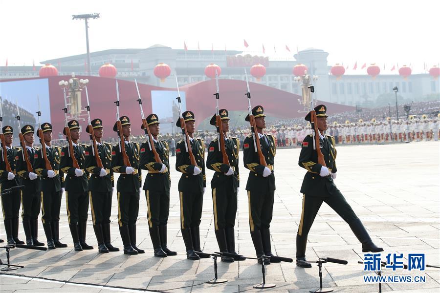 10月1日上午,慶祝中華人民共和國成立70周年大會在北京天安門廣場隆重舉行。這是標兵就位。新華社記者孟永民攝