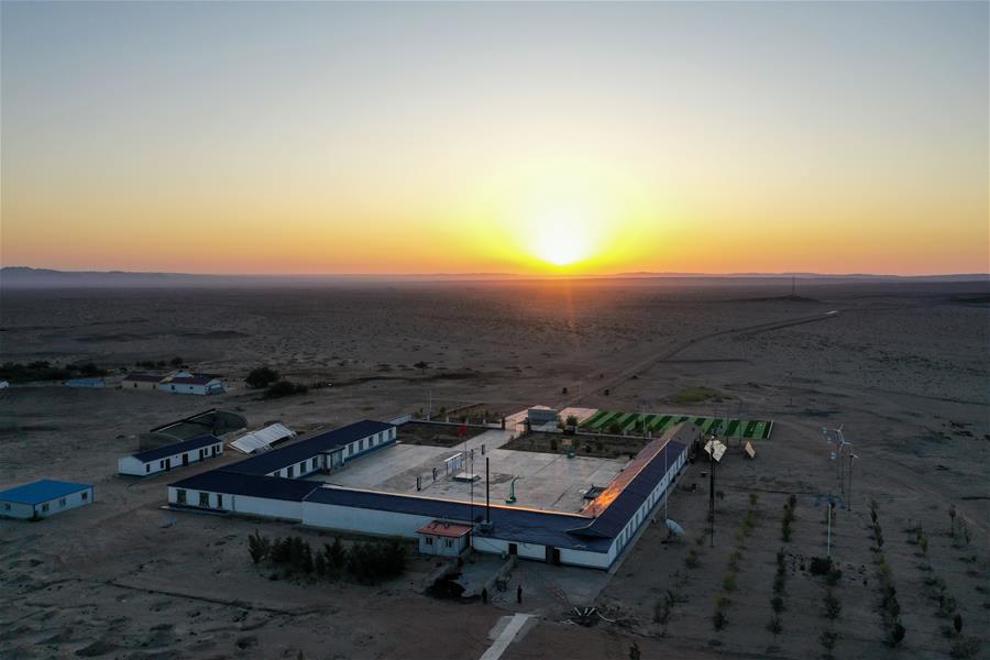 這是內(nèi)蒙古自治區(qū)額濟(jì)納旗算井子邊境派出所(9月25日無人機(jī)拍攝)。新華社記者劉磊攝