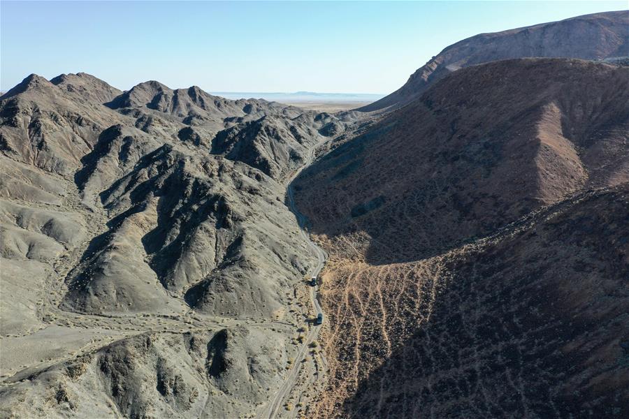 9月25日,內(nèi)蒙古自治區(qū)額濟(jì)納旗算井子邊境派出所的民警開車對(duì)轄區(qū)進(jìn)行巡護(hù)(無(wú)人機(jī)拍攝)。新華社記者劉磊攝