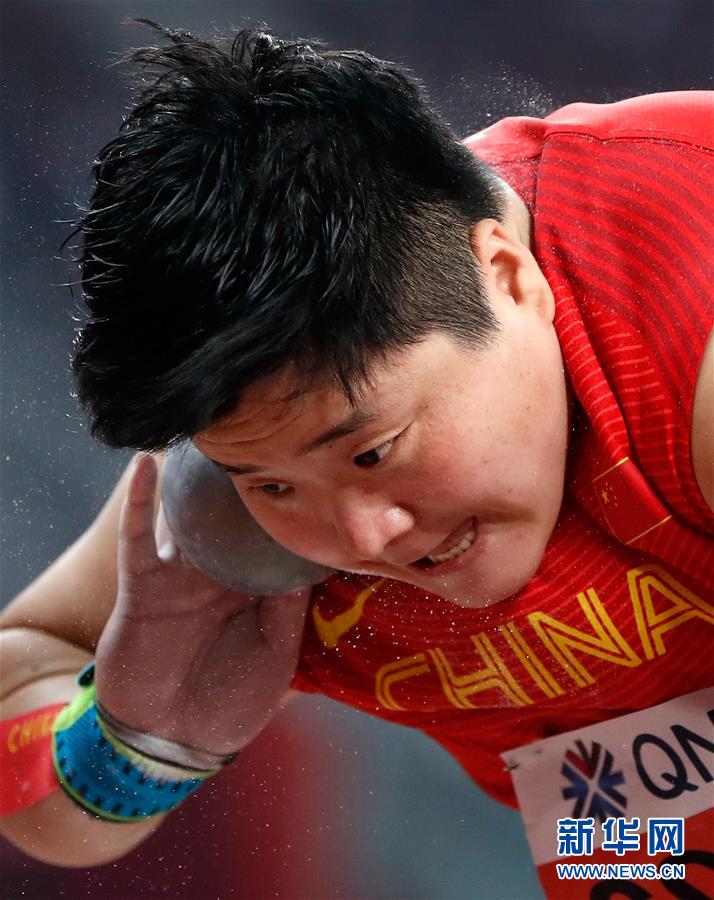 當(dāng)日,在卡塔爾多哈舉行的2019國際田聯(lián)世界田徑錦標(biāo)賽女子鉛球決賽中,衛(wèi)冕冠軍、中國選手鞏立姣以19米55的成績奪得冠軍。 新華社記者王麗莉攝