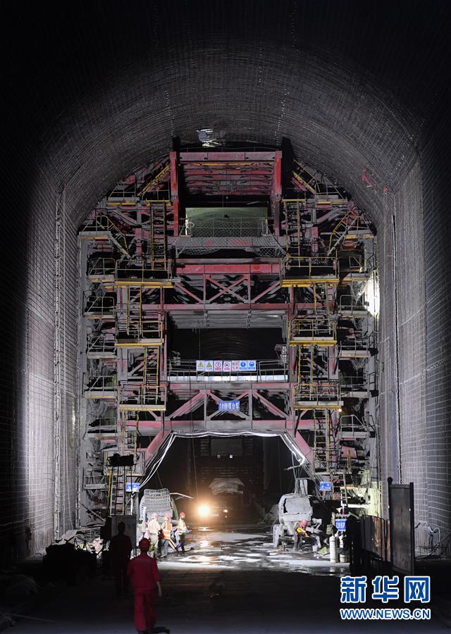 這是烏東德水電站泄洪洞中的鋼模臺(tái)車施工現(xiàn)場(chǎng)(5月31日攝)。新華社記者陳曄華攝