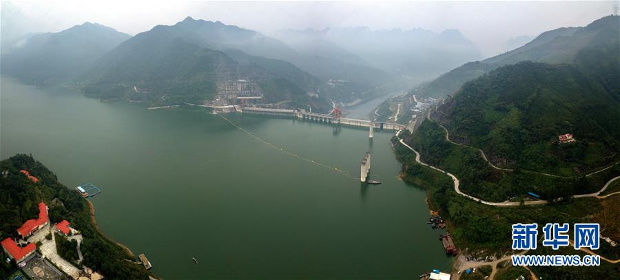 這是用無(wú)人機(jī)拍攝的建設(shè)中的烏東德水電站全景(5月30日攝)。新華社記者陳曄華攝