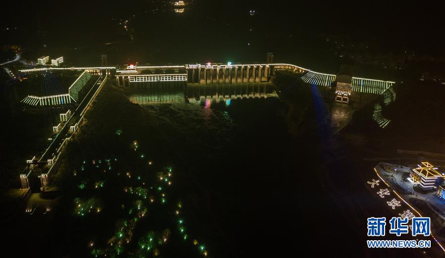 這是位于廣西大化縣境內(nèi)的大化水電站夜景(10月21日無(wú)人機(jī)拍攝)。新華社記者張愛林?jǐn)z