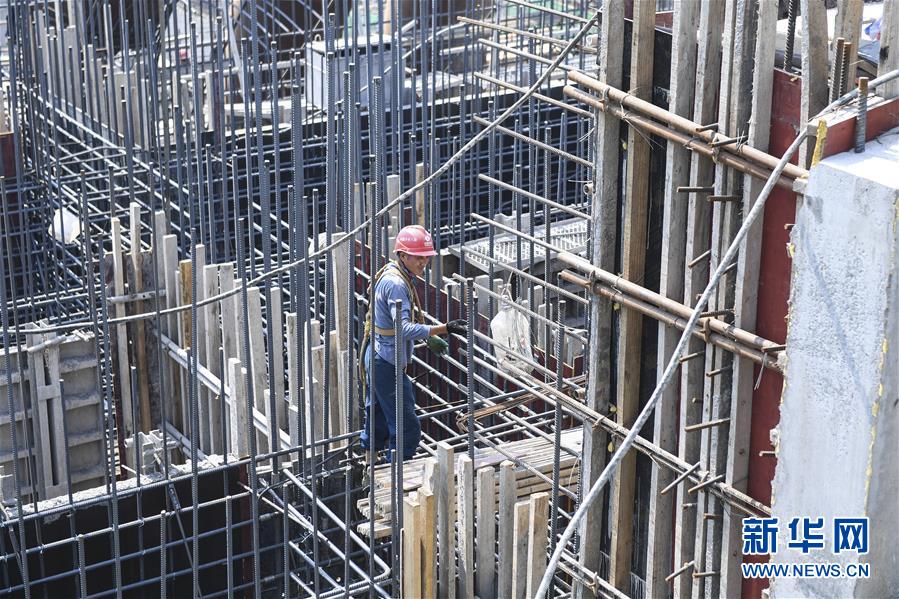 10月6日,工人在大藤峽水利樞紐工程工地上調(diào)整鋼筋安裝位置。新華社記者曹祎銘攝