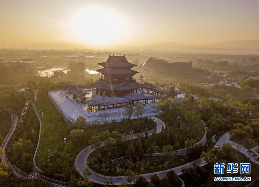 北京世園會(huì)園區(qū)內(nèi)的永寧閣(10月7日無人機(jī)拍攝)。新華社記者才揚(yáng)攝