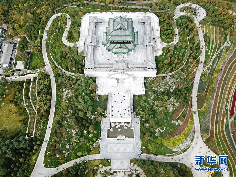 北京世園會(huì)園區(qū)內(nèi)的永寧閣(10月6日無(wú)人機(jī)拍攝)。新華社記者才揚(yáng)攝