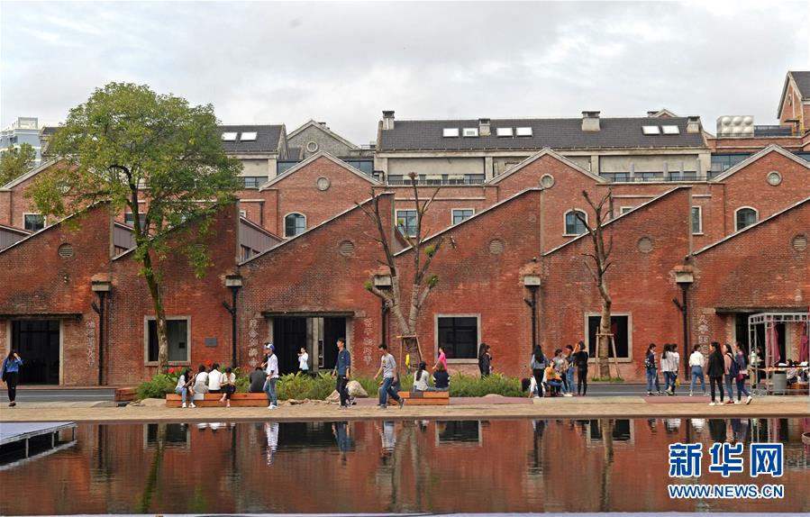 游客在江西景德鎮(zhèn)陶溪川文創(chuàng)街區(qū)內游覽參觀(2016年10月20日攝)。新華社記者 萬象 攝