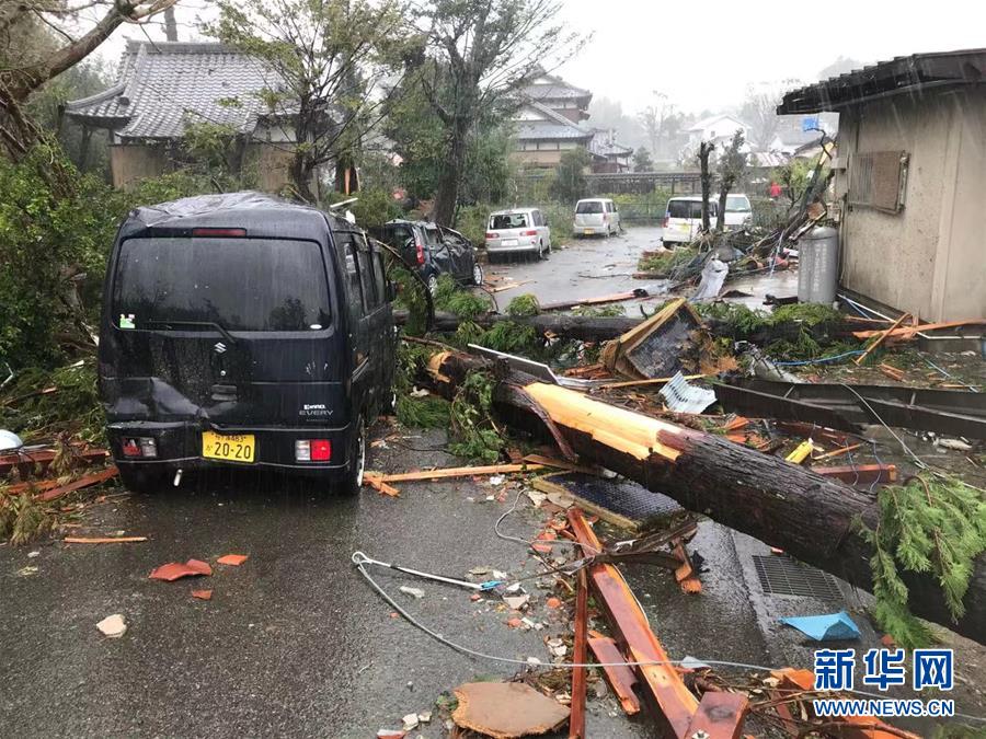 10月12日,在日本千葉縣市原市,建筑物和車輛遭龍卷風襲擊后被損毀。新華社記者 鄧敏 攝