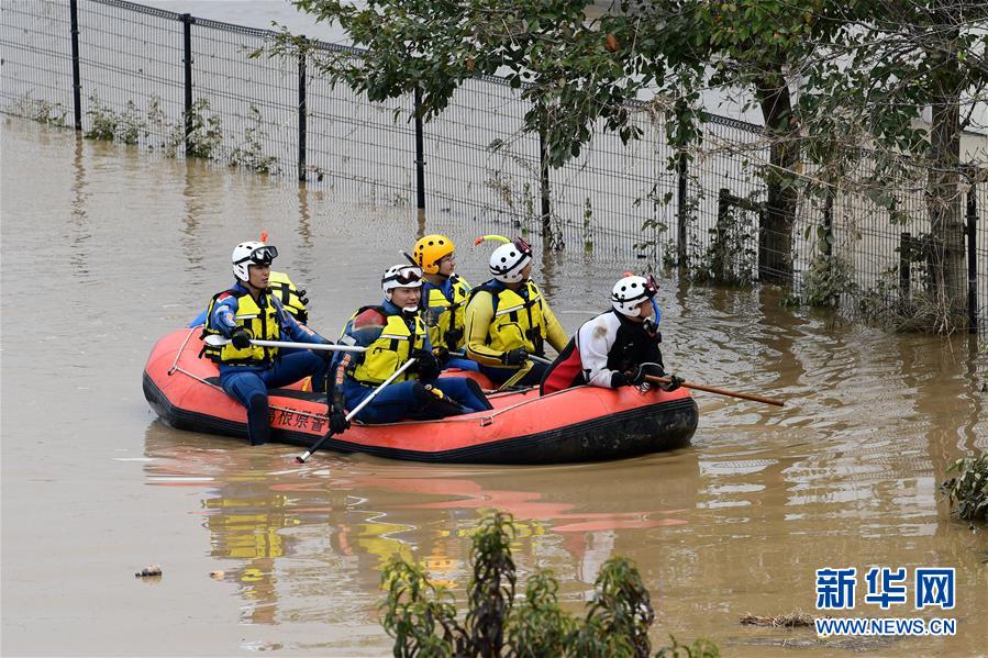 10月14日,在日本長(zhǎng)野市,當(dāng)?shù)鼐仍藛T展開(kāi)搜救工作。受縱貫東日本強(qiáng)臺(tái)風(fēng)“海貝思”帶來(lái)的強(qiáng)降雨影響,日本多地暴發(fā)洪災(zāi),已造成33人死亡、19人失蹤。據(jù)日本共同社13日統(tǒng)計(jì),“海貝思”過(guò)境導(dǎo)致日本多處河流泛濫,目前有21條河流決堤24處。其中,流經(jīng)長(zhǎng)野縣的千曲川決堤,造成長(zhǎng)野市和千曲市大范圍被淹,大片住宅區(qū)被洪水包圍,有的房屋甚至被淹至2層。新華社記者華義攝