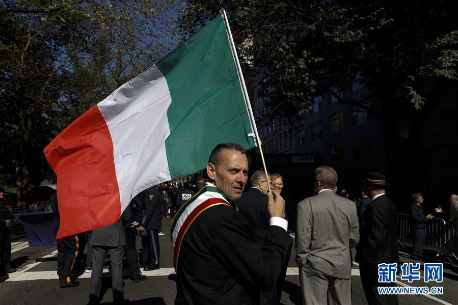 10月14日,在美國紐約曼哈頓第五大道,一名男子手舉意大利國旗參加哥倫布日游行。當(dāng)天,紐約舉行哥倫布日游行,紀(jì)念意大利航海家克里斯托弗·哥倫布首次到達(dá)美洲大陸。哥倫布日游行也是美國最大的展示意大利文化傳統(tǒng)的慶?;顒?dòng)。新華社記者李木子攝