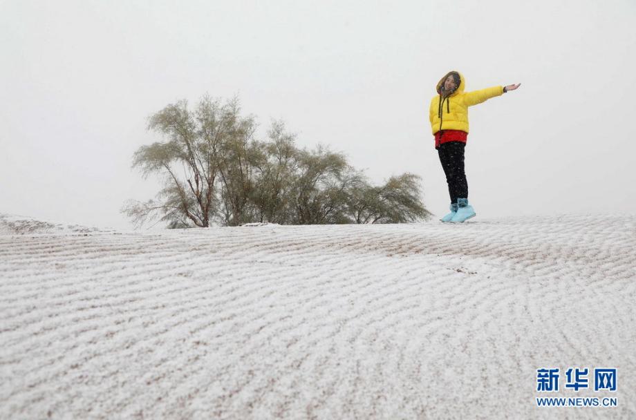 大漠沙覆雪:寧夏沙波頭迎來降雪