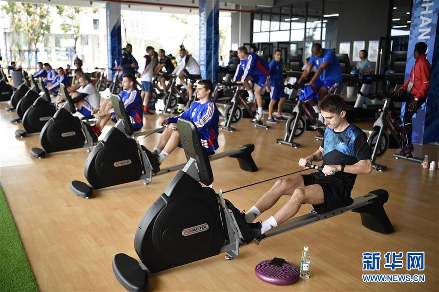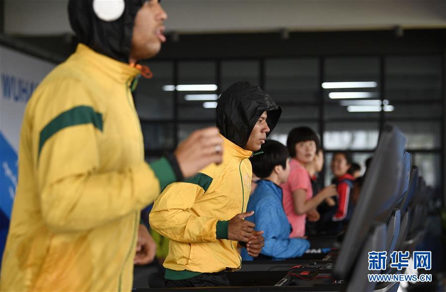 10月16日,運動員在軍運村內(nèi)的健身中心鍛煉。新華社記者王鵬攝