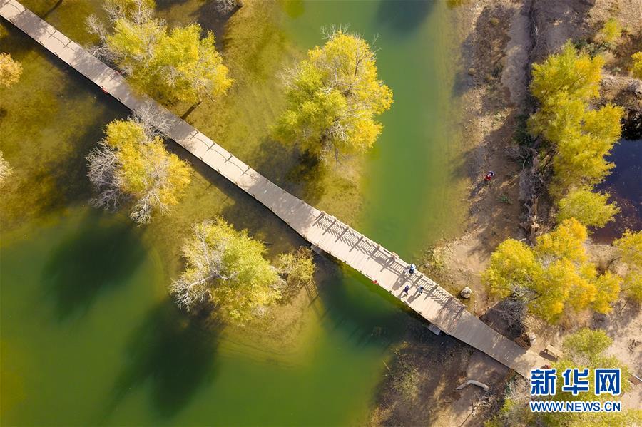 10月16日,游客在內蒙古自治區(qū)額濟納旗的胡楊林游覽。新華社記者丁洪法攝