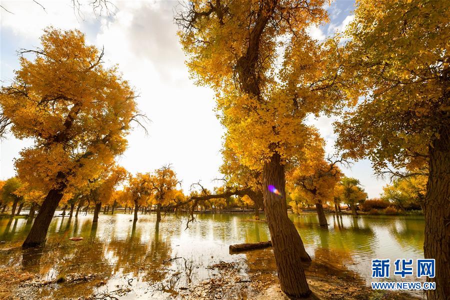 10月16日拍攝的內蒙古阿拉善盟額濟納旗境內的胡楊林。新華社記者彭源攝