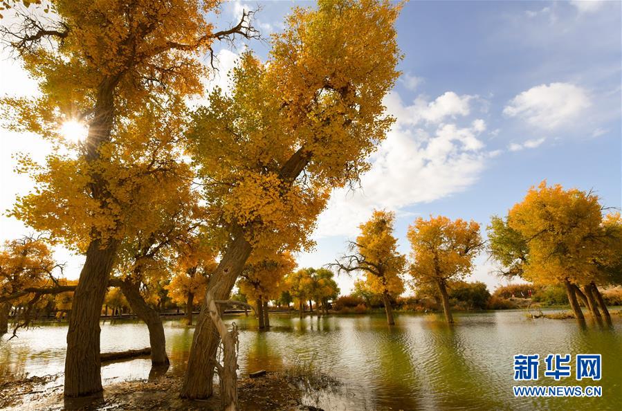 10月16日拍攝的內蒙古阿拉善盟額濟納旗境內的胡楊林。新華社記者彭源攝