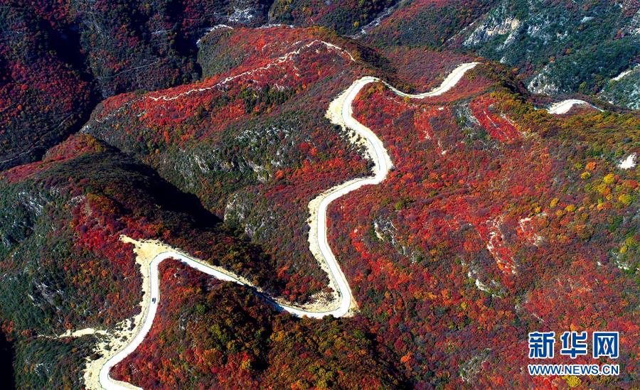 這是10月19日無人機(jī)拍攝的河北省涉縣太行紅葉大峽谷景色。金秋十月,河北省涉縣偏城鎮(zhèn)太行紅葉大峽谷的紅葉進(jìn)入觀賞佳期,吸引眾多游客前來登山賞景。新華社記者王曉攝