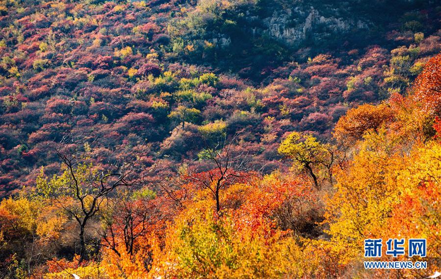 10月24日,游客在河北省武安市賀進(jìn)鎮(zhèn)后臨河村觀賞紅葉。金秋時(shí)節(jié),位于太行山區(qū)的河北省武安市賀進(jìn)鎮(zhèn)后臨河村的紅葉進(jìn)入觀賞佳期。新華社記者王曉攝