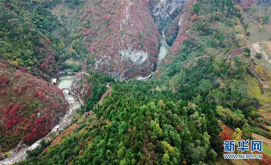 這是西狹頌景區(qū)秋景(10月16日無(wú)人機(jī)拍攝)。新華社記者陳斌攝