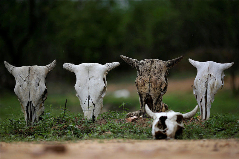 當?shù)貢r間2017年2月11日,巴西帕拉伊巴,路上牛的頭骨。
