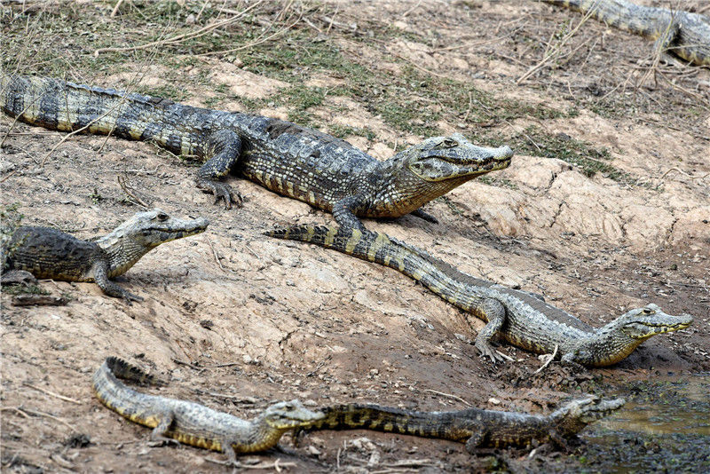 當?shù)貢r間2016年6月24日,巴拉圭General Diaz,巴拉圭與阿根廷邊境遭遇嚴重干旱,皮科馬約河河水枯竭,凱門鱷在水塘內(nèi)。