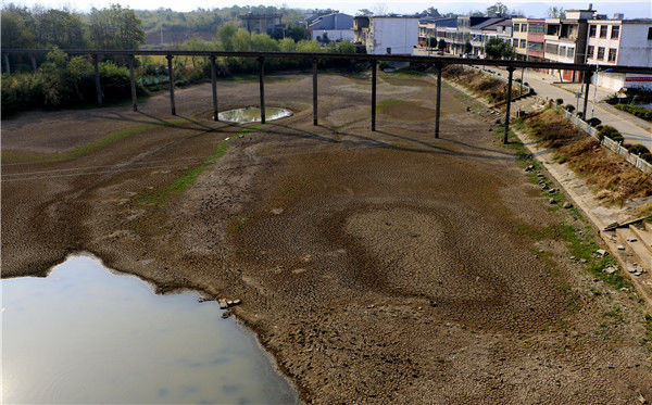 2019年10月4日,江西彭澤縣黃嶺鄉(xiāng)芳湖村,池塘干枯見底。