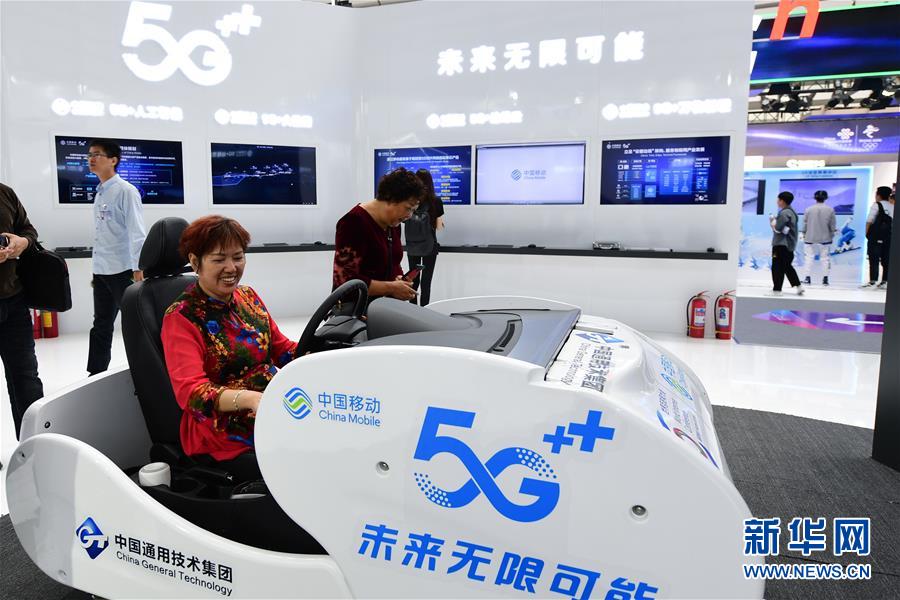 10月21日,一名參觀(guān)者在浙江烏鎮(zhèn)舉行的互聯(lián)網(wǎng)之光博覽會(huì)上體驗(yàn)基于5G技術(shù)的遠(yuǎn)程駕駛系統(tǒng)。新華社記者尹棟遜攝