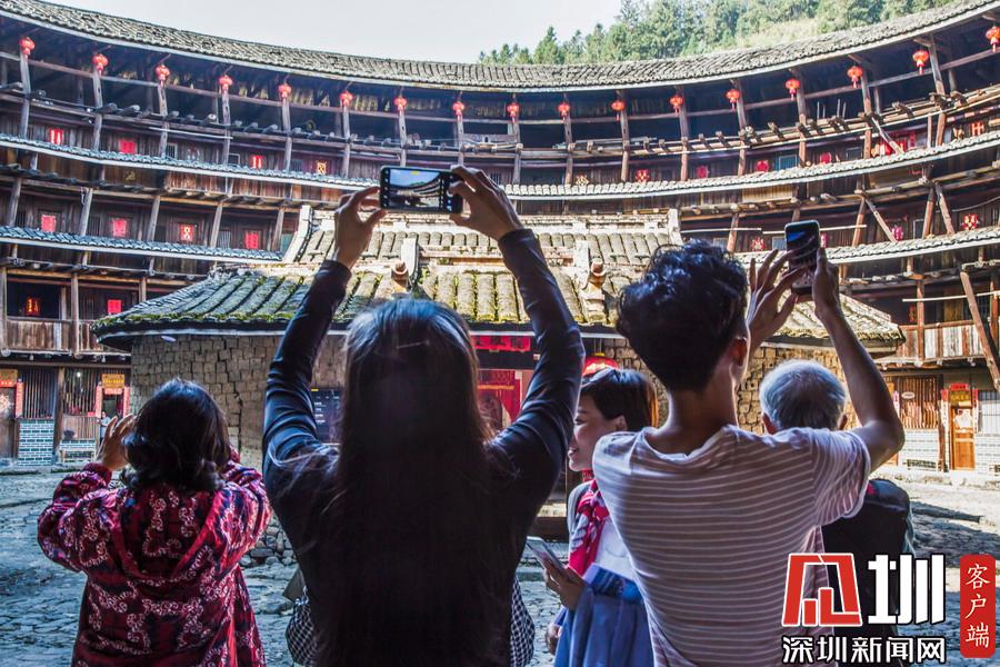 客家圍龍屋里面,現(xiàn)在大部分被開發(fā)成旅游景點(diǎn),有“土樓之王”稱號的承啟樓,每年就吸引大量的游客參觀。李酮攝