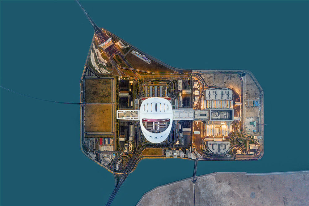 2019年1月6日,廣東珠海,航拍港珠澳大橋人工島夜景美如畫。ainyone/視覺中國(guó)