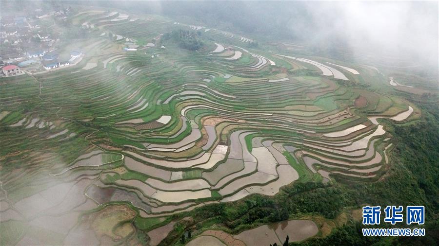 這是5月18日無人機(jī)拍攝的貴州省丹寨縣龍泉鎮(zhèn)高要梯田景色。初夏時(shí)節(jié),位于貴州省丹寨縣龍泉鎮(zhèn)的高要梯田景色優(yōu)美。新華社記者楊文斌攝