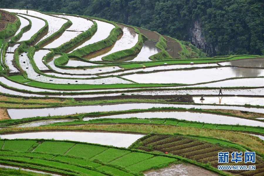 5月18日,農(nóng)民從貴州省丹寨縣龍泉鎮(zhèn)高要梯田里走過(guò)。初夏時(shí)節(jié),位于貴州省丹寨縣龍泉鎮(zhèn)的高要梯田景色優(yōu)美。新華社記者楊文斌攝