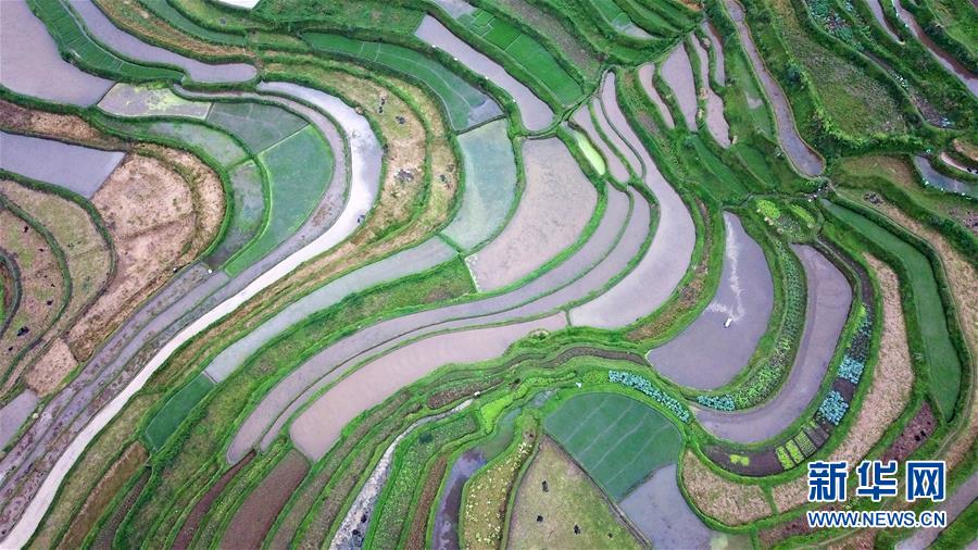 這是5月18日無(wú)人機(jī)拍攝的貴州省丹寨縣龍泉鎮(zhèn)高要梯田景色。初夏時(shí)節(jié),位于貴州省丹寨縣龍泉鎮(zhèn)的高要梯田景色優(yōu)美。新華社記者楊文斌攝