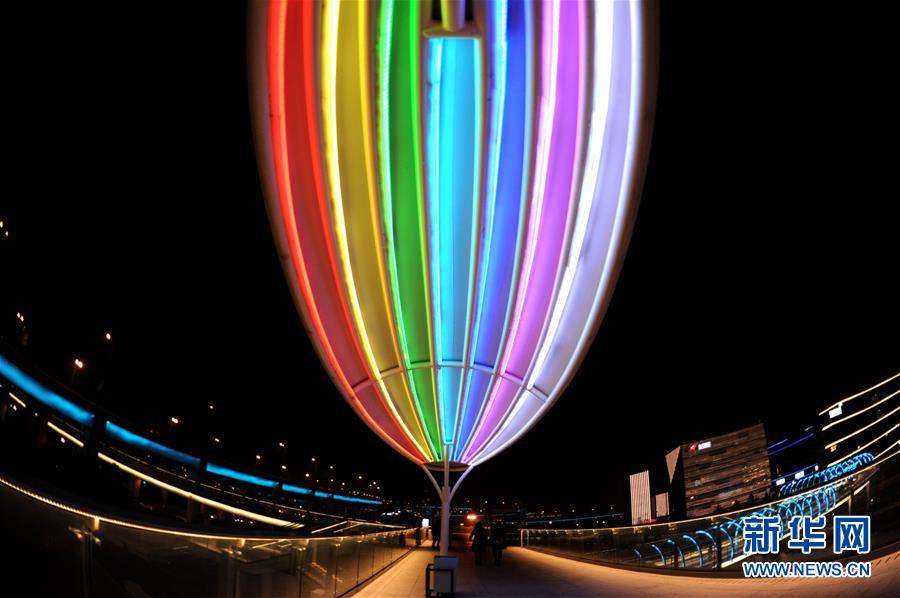10月25日晚在國(guó)家會(huì)展中心(上海)周邊地區(qū)拍攝的“玉蘭花開(kāi)”燈飾。