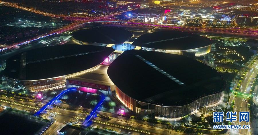 2019年11月5日,第二屆中國(guó)國(guó)際進(jìn)口博覽會(huì)將在上海開(kāi)幕。夜幕下的國(guó)家會(huì)展中心(上海)燈光璀璨,流光溢彩,靜待八方賓客。新華社記者丁汀攝