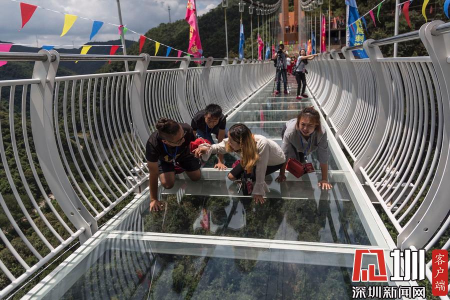 2018年8月18日,昆明市安寧首座高空峽谷5D玻璃大橋在青龍峽景區(qū)內(nèi)正式試運行,這也是云南省第一座高空峽谷玻璃大橋。該橋位于螳螂川河畔的青龍峽景區(qū),橋的垂直高度108米,總長跨度為188米。橋面采用聲光電技術(shù),有20多種特效場景。踩上去,伴隨著玻璃破碎的聲音,橋面也呈現(xiàn)玻璃破碎的畫面,整個營造出了5D的視覺感受,顛覆你對高空刺激的認(rèn)知。游客踏上高空玻璃橋表示很“害怕”。