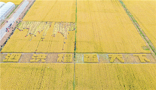 2019年10月26日,江蘇省宿遷市泗洪縣在稻米小鎮(zhèn)石集鄉(xiāng)舉行具有地方特色的割稻比賽,近60名選手在金色稻田揮舞銀鐮、緊張角逐。