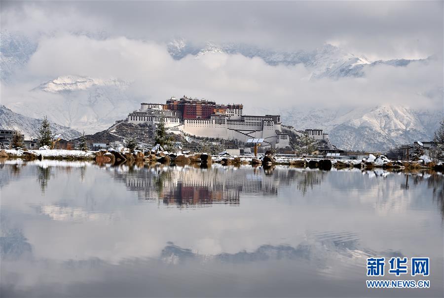 6月5日拍攝的藍天白云和綠水之間的布達拉宮。