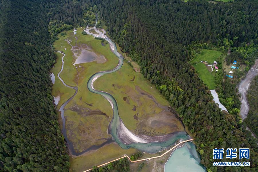 西藏林芝境內(nèi)森林深處的村莊(5月17日無(wú)人機(jī)拍攝)。