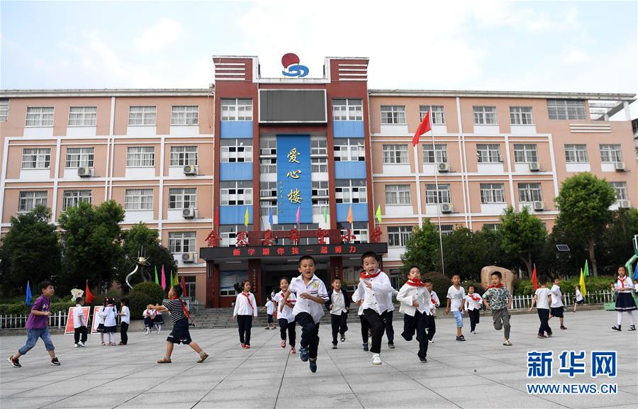 9月3日,金寨縣希望小學(xué)學(xué)生在課間玩耍。